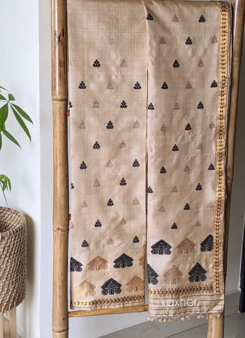 Kaxhori mekhala chador toss silk with tree motifs