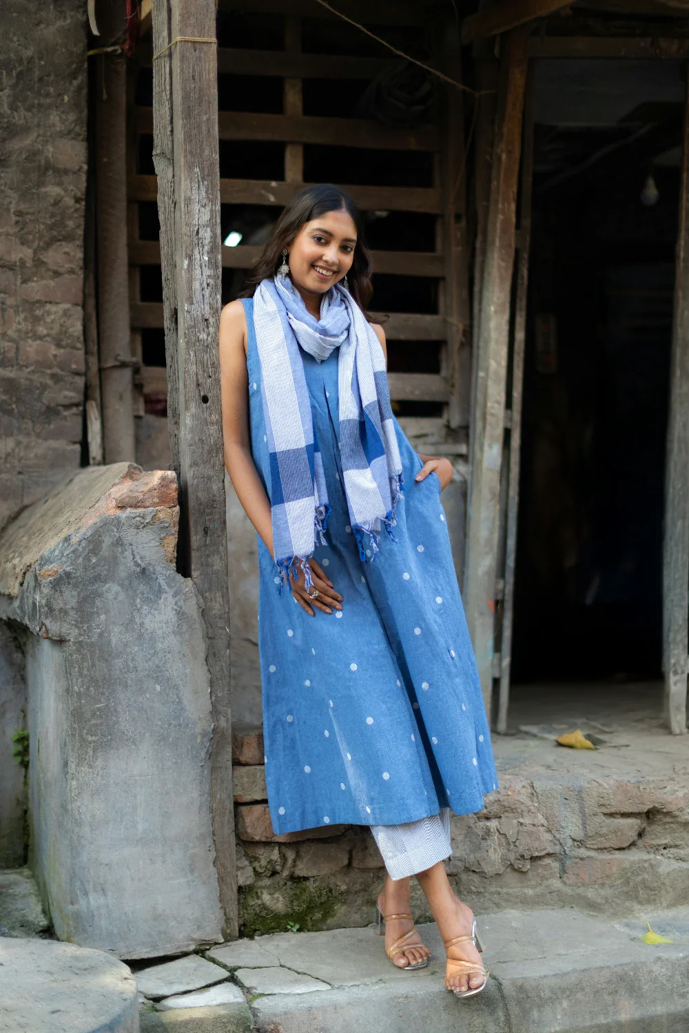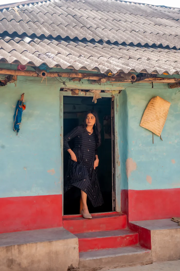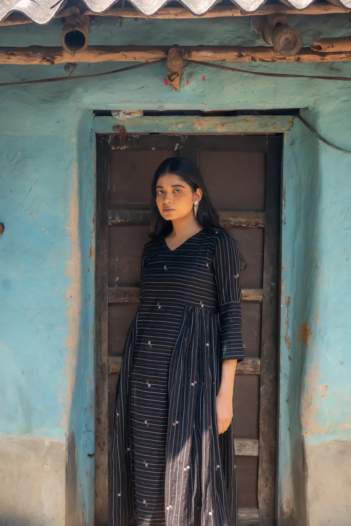 Shimmer Black Handwoven Cotton Jamdani Dress
